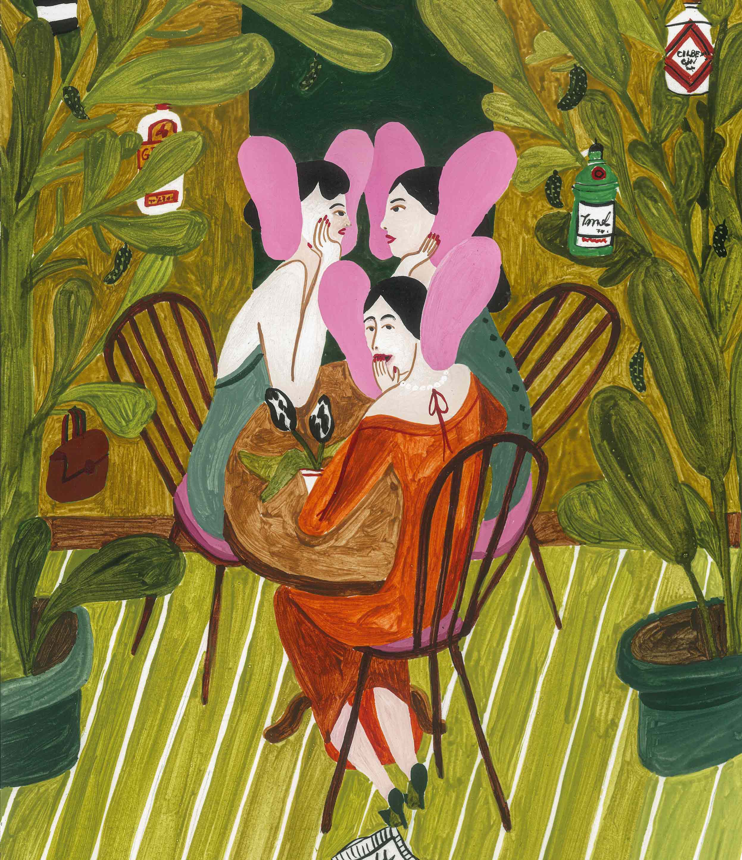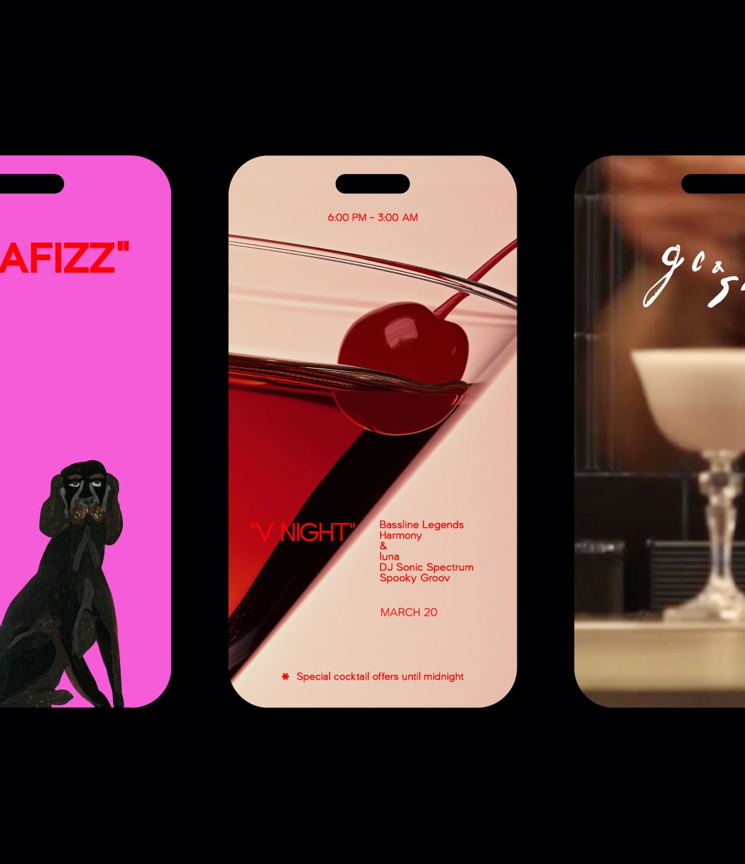 To bring this concept to life, we collaborated with talented artist Asya Panina, who developed a series of vibrant illustrations that narrate the brand’s story. These scenes depict individuals enjoying their cocktails and engaging in lighthearted conversations, reflecting the playful essence of the bar.