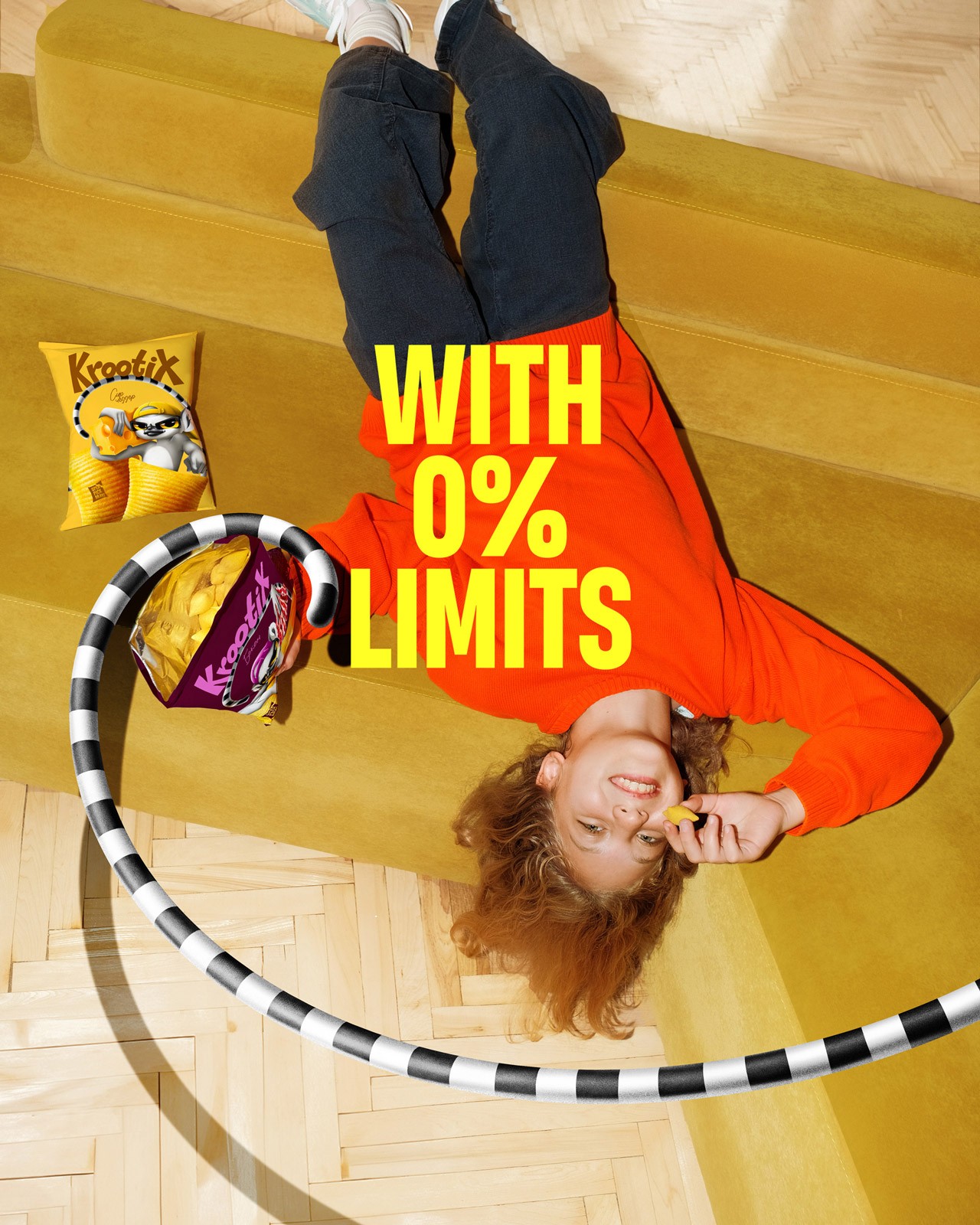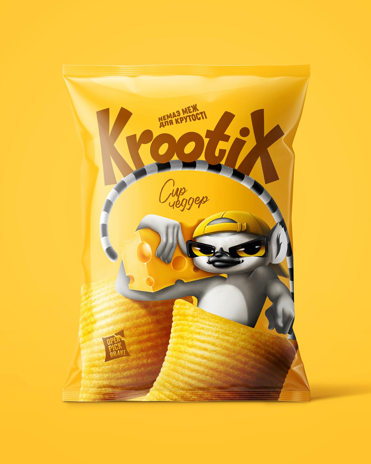 The mascot, a lemur, became the symbol of this free, youthful spirit. Always in motion, always part of a group, always playful. Each flavor tells a new story, with the lemur interacting differently with the ingredients. In the cheese packaging, for example, he holds the cheese like a speaker, turning flavor into rhythm.