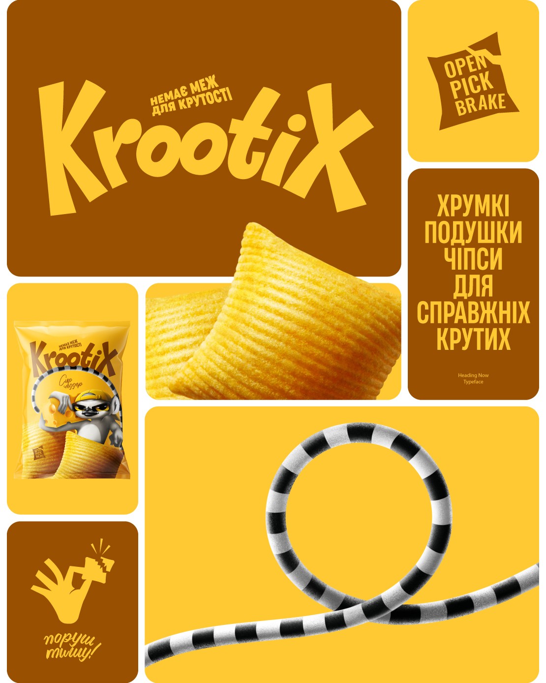 We used these insights to build a brand world that feels just as playful, dynamic, and expressive. The name “Krootix” is a created word, rooted in the Ukrainian “крутий” (cool) and “крутить,” meaning “to roll” and “to engage in.” Adding the suffix “ix” at the end opened the whole essence of the product in its respective category.